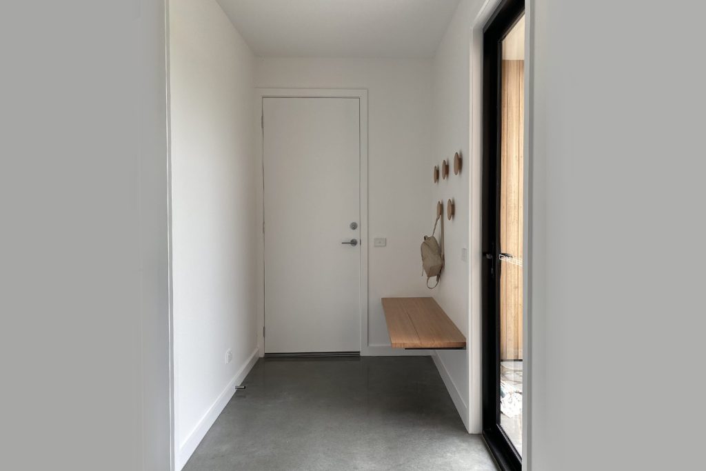 An Airlock (a small room at an external door) is a highly effective way to maintain a stable home temperature. It’s a easy inclusion at the time of design and doubles nicely as a ‘mud’ and cloak room.